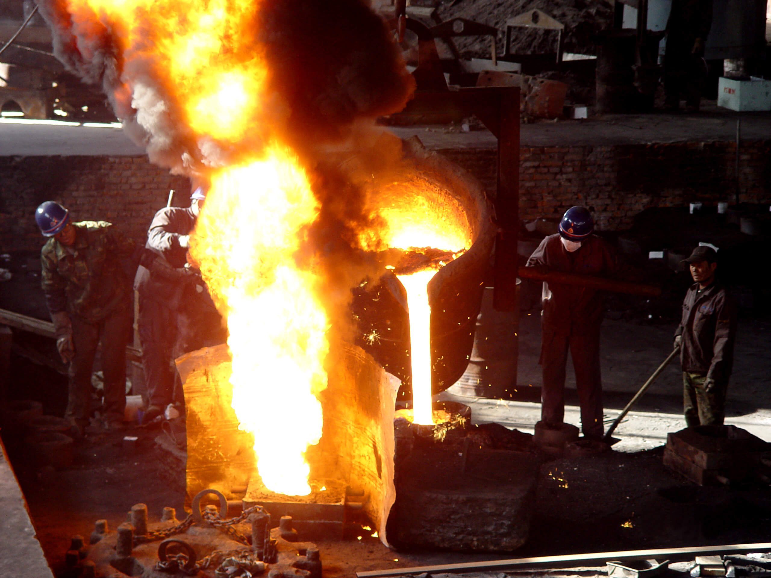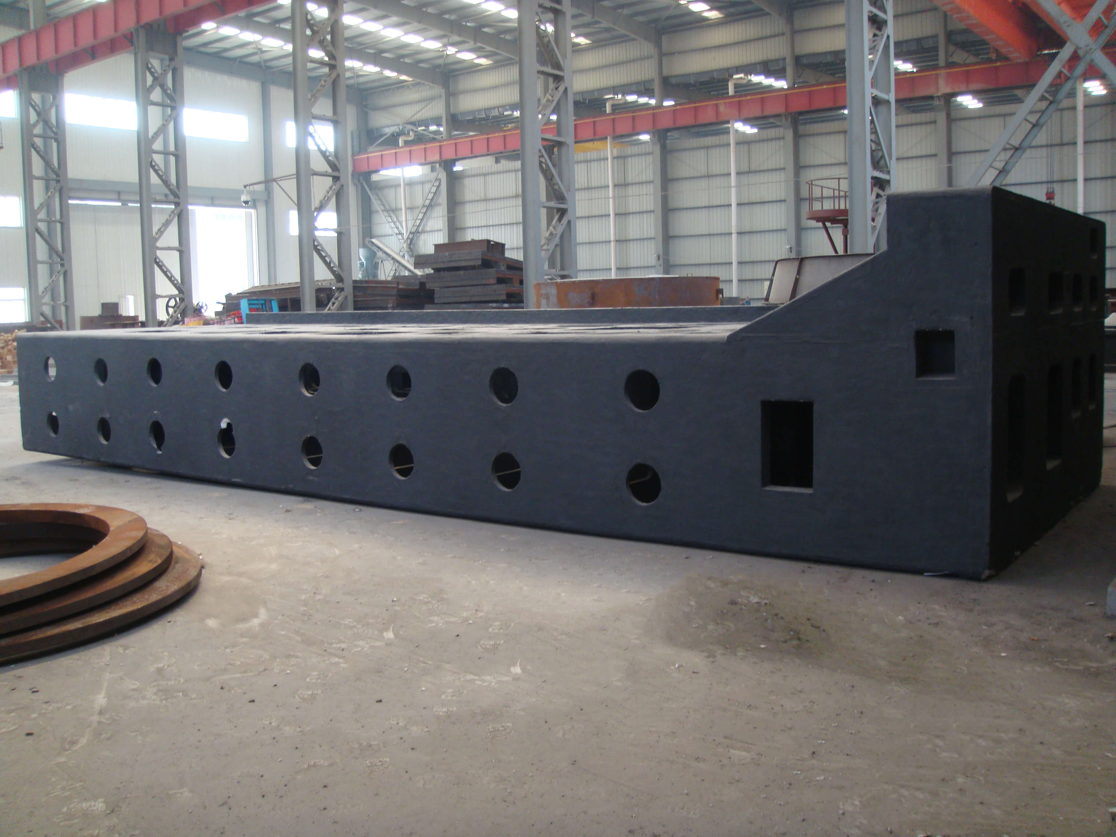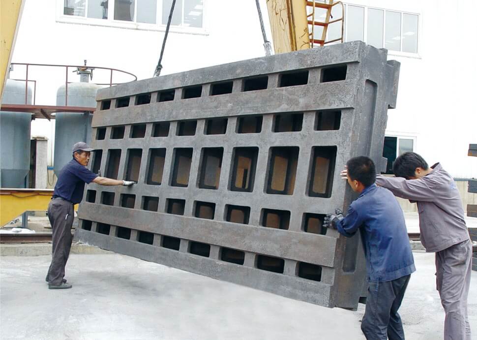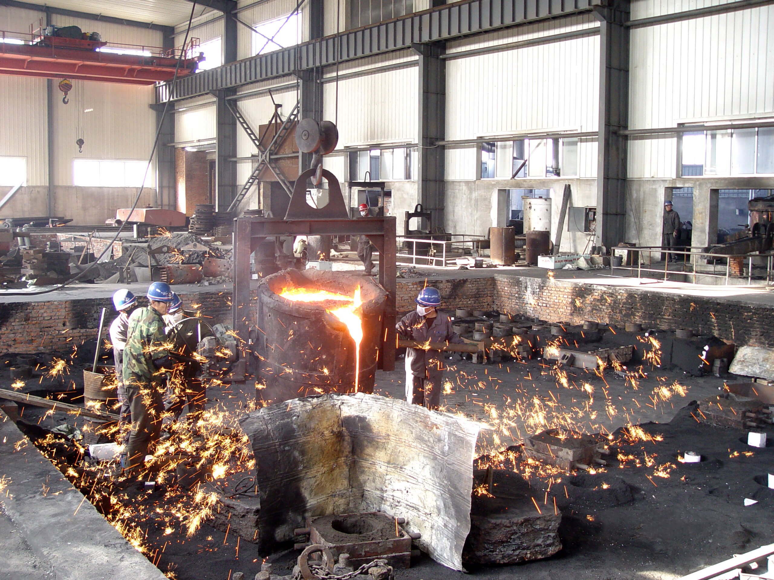 建筑面積7420平方米,50t吊車1臺,20t吊車1臺,10吊車4臺。擁有7t中頻爐1座;5t中頻爐1座;3t中頻爐1座;1t中頻爐1座;10t沖天爐1座;4m×3m×1.8m干燥窯;5t/h樹脂砂再生系統(tǒng)4套,V法生產線1套;3t沖天爐1座;干燥窯2個,PW3000×2500×6000拋丸機1臺;HY-2200振動時效機2臺;全譜直讀光譜儀1臺;WAW-600B電液伺服萬能試驗機1臺;JB-300B半自動沖擊試驗機等。